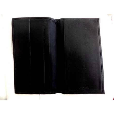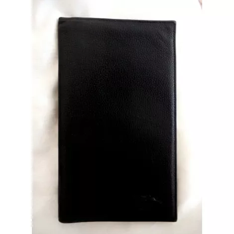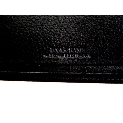 Très beau porte-chéquiers noir de chez Longchamp en cuir grainé, longueur 19,5 cm X Largeur 11, 5 cm, intérieur avec d’un côté une poche ou glisser un chéquier et de l’autre côté, une poche pour les billets et 2 plus petites pour les cartes, sigle Lonchamp sur le devant et à l’intérieur, envoi rapide et soigné