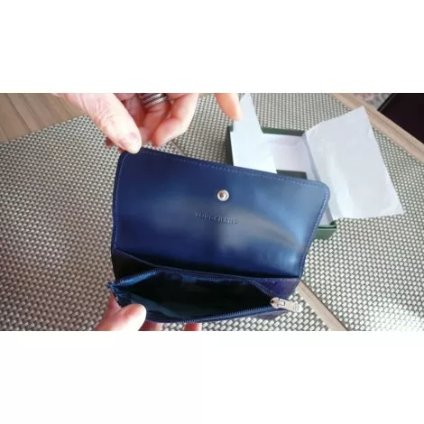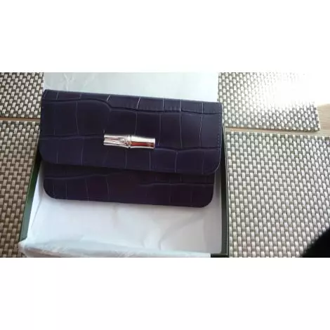 Porte Monnaie “collection Roseaux de Longchamps ” en cuir coloris bleu marine façon croco