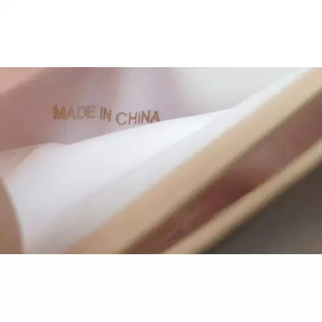 Il est en cuir et de couleur rose pâle.