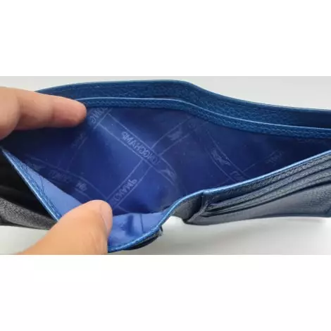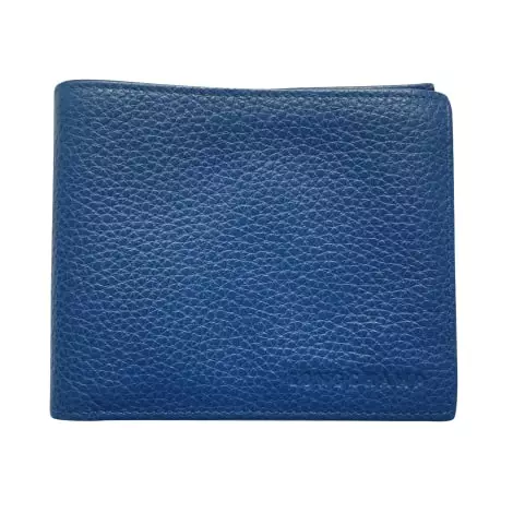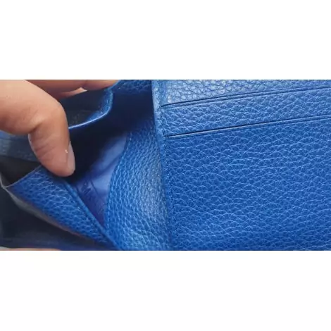 Il est en cuir et de couleur bleue.