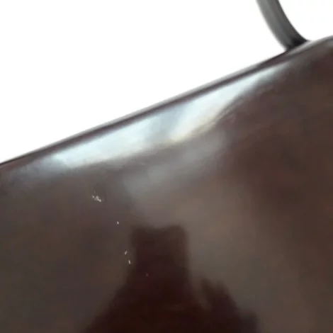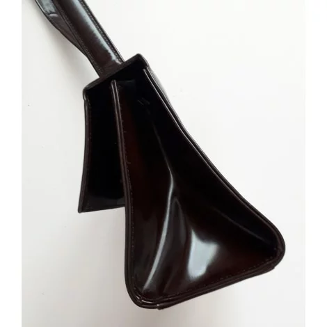 cuir épais rigide lisse verni marron foncé.