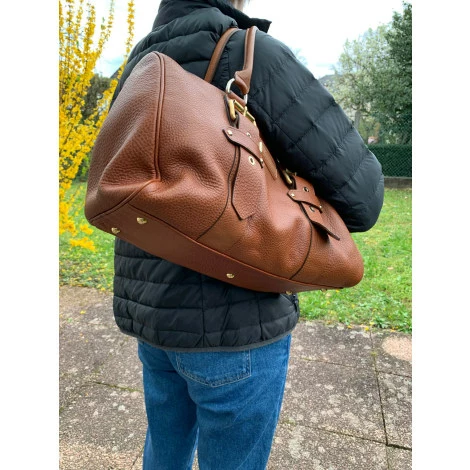 Sac bowling Longchamp by Kate Moss en cuir grainé marron, excellent état. Doublé de tissu avec une poche intérieure. Dimensions 33cm de long, 23cm de haut et 18cm de large.
