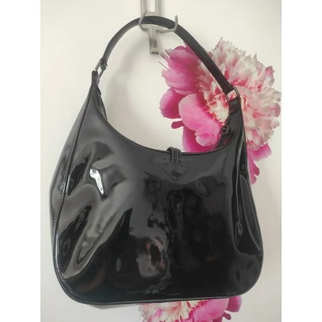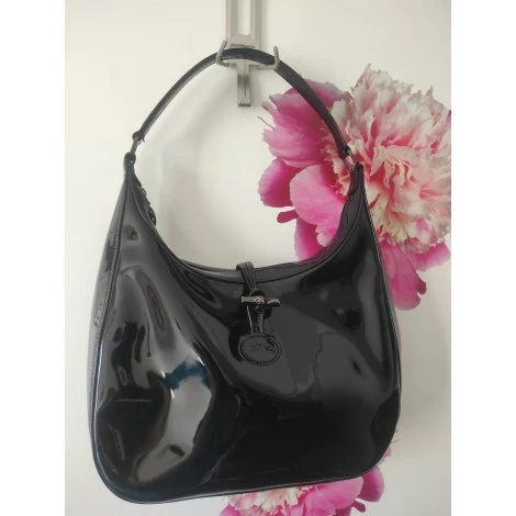 Sublime cabas sac en cuir de veau vernis noir – ligne roseau en métal noir de chez Longchamp