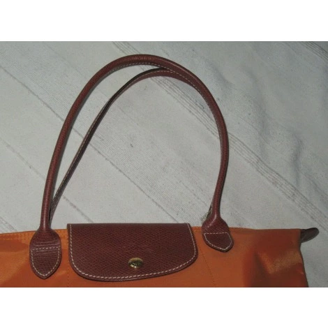 Longchamp, le pliage shopping, toile et cuir, orange, BE.