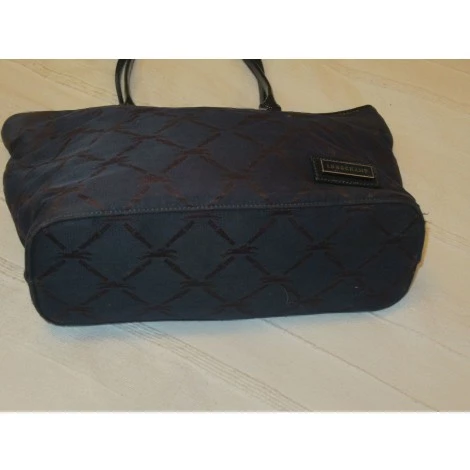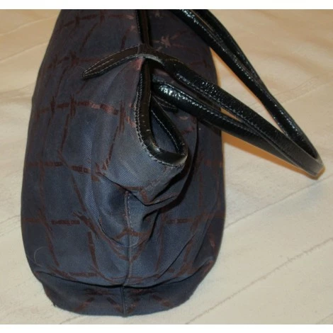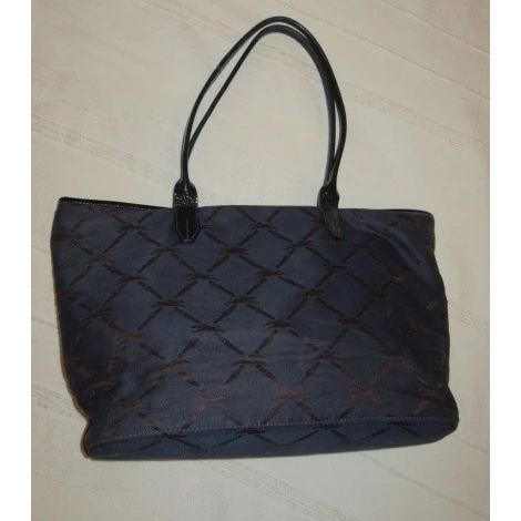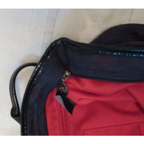 Très joli sac Longchamp en toile/tissu monogrammé, la toile est bleue foncée, les parties en vernis sont bleues foncées telles que les anses.