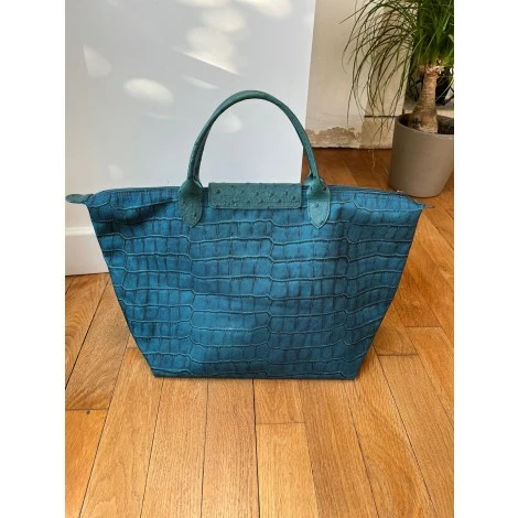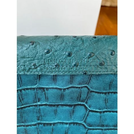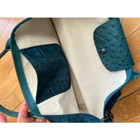 Poignées et Rabat cuir façon python autruche, couleur bleu vert canard