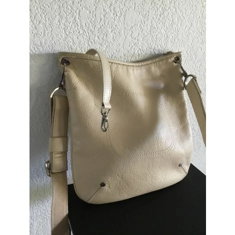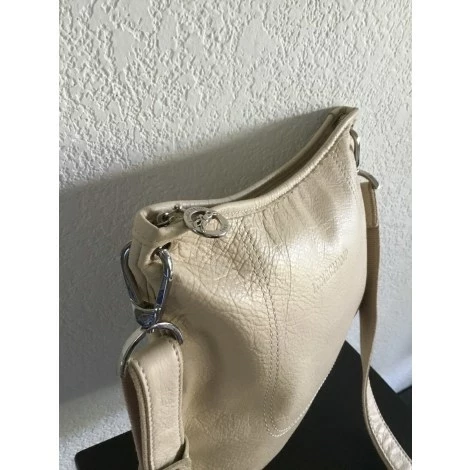 Authentique sac Longchamp en cuir gainé beige, modèle Cross Body à bandoulière réglable, intérieur bleu clair avec monogramme de la marque, 1 poche zippée + 2 petites poches et 1 attache clés sur sangle. En excellent état. Dimensions : hauteur 26 cm, largeur 26 cm, profondeur 2 cm.
