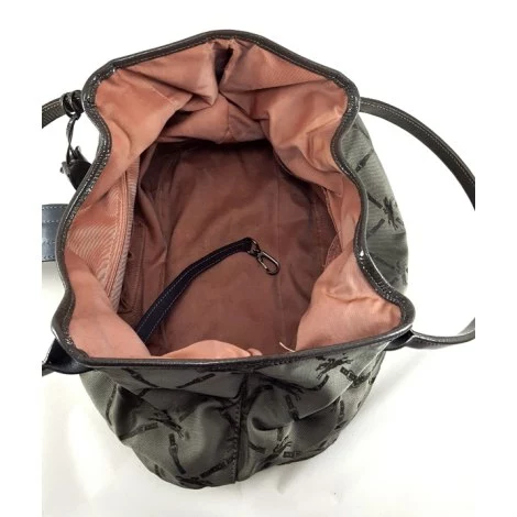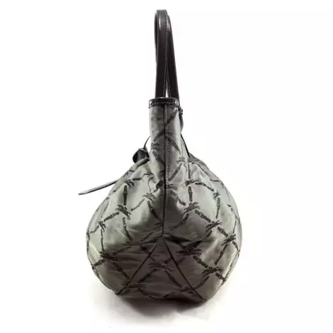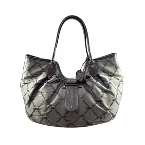 • Color/Material: Gray Logo Embossed Fabric, Patent Leather Trim