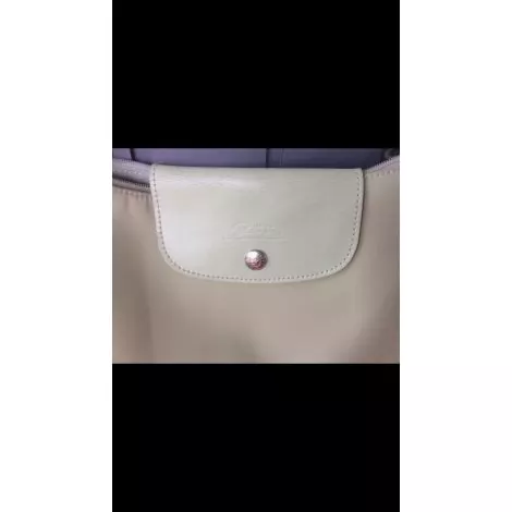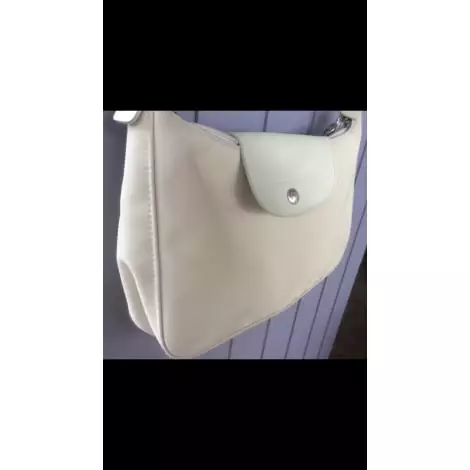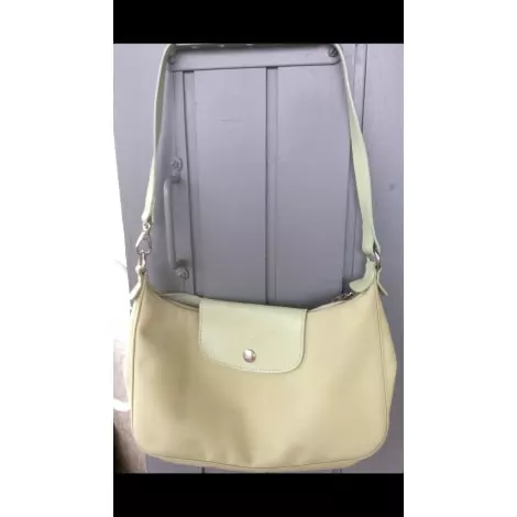 Sac à main longchamp Paris fabrication française en polyester vert d eau à porter épaule par bandoulière cuir de 30cm avec 2 poches intérieures . Sac ferme par zip et par rabat cuir , bon état dimensions 26×16 épaisseur bas 6cm