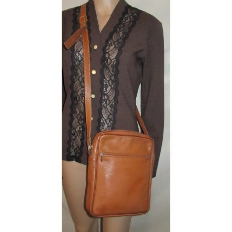 Besace homme Longchamp, tout cuir grainé marron/cognac, BE.
