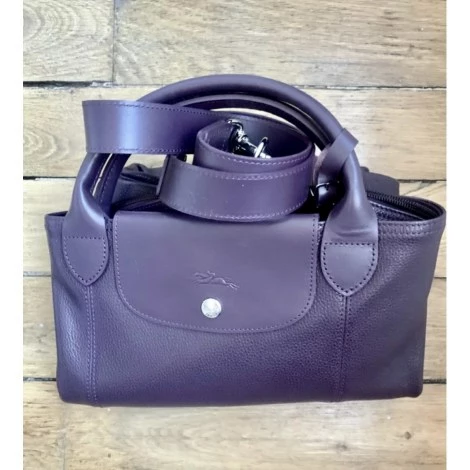 Le sac est tout en cuir grainé et la bandoulière amovible en cuir lisse