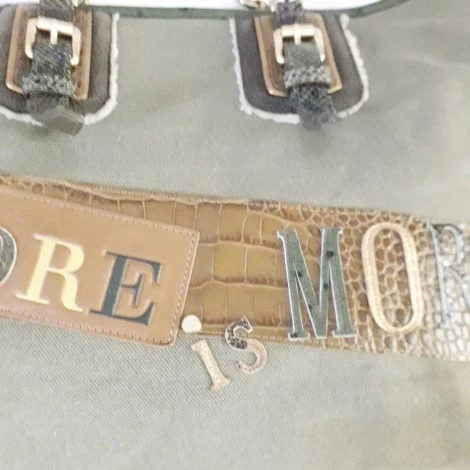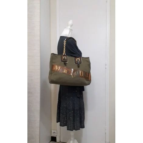 cabas toile épaisse kaki et cuir marron, camel, et “python” kaki.