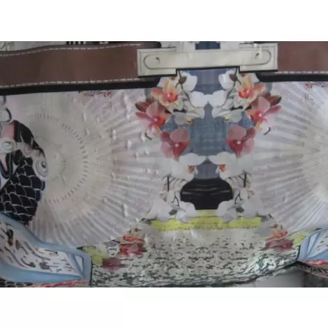 Etat satisfaisant, le tissu cloque par endroits mais peu visible grâce au motif – voir photos