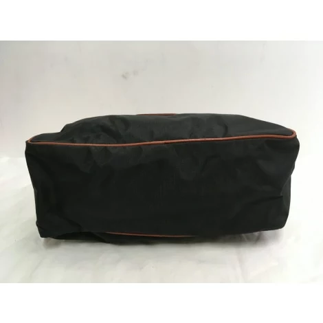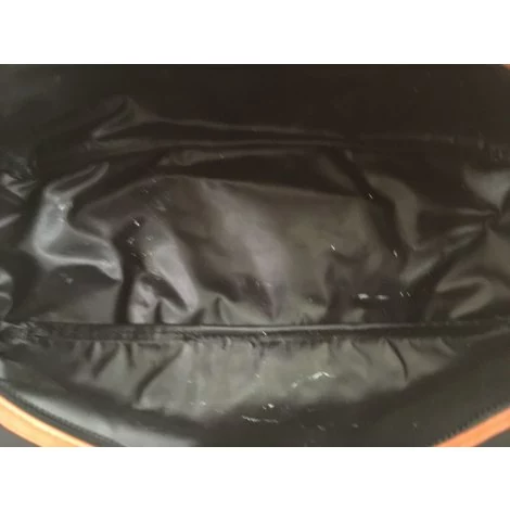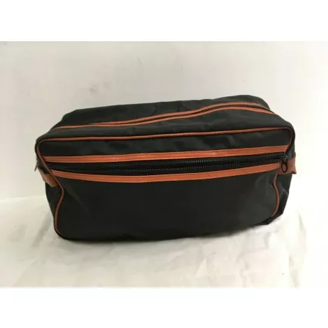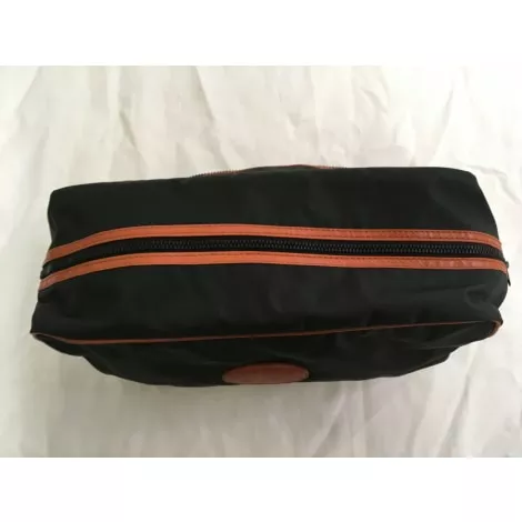 Trousse de toilette Longchamp en toile verte et cuir marron.